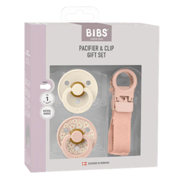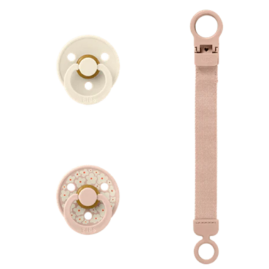BIBs Latex Colour Round Pacifier & Loop Clip Gift Set Blush