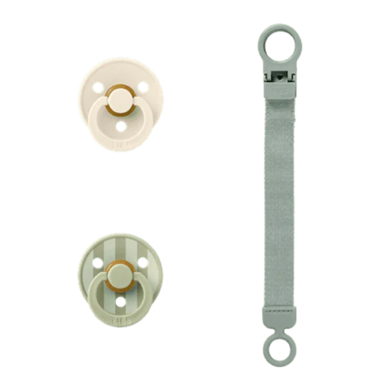 BIBs Latex Colour Round Pacifier & Loop Clip Gift Set Sage