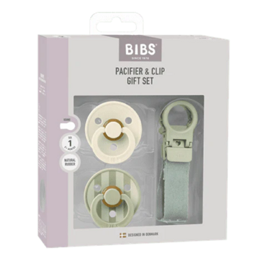 Perfect Gift Set for newborns and their parents. This set combines some of our most-loved essentials, The Colour Round Pacifier and the Pacifier Clip Loop. Designed to keep pacifiers within reach and off the floor, it features a handy one-handed clipping mechanism and a flexible silicone ring that securely attaches to all BIBS pacifiers.