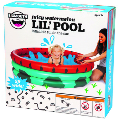 This Watermelon Lil Pool is 5 feet wide, giving your mini-me a ton of room to splash around with their favorite toys. It inflates & deflates via a standard size air valve. Our Lil Pools are not just funner, they're much more practical for on-demand use when the summer heat gets the best of you. They're also a great centerpiece for party games (bobbing for apples, ring toss, etc).