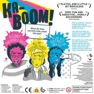 Ka-Boom! Gather your friends and get ready - it's time to drop some truth bombs. Answer questions about each other and prepare for funny facts, awkward admissions and random revelations that'll cause explosions of laughter. Grab a pencil, pick a question and bombs away!