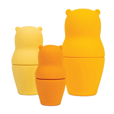 A twist on the classic nesting dolls, our bears are made from 100% food-grade silicone. Silicone toys are more sustainable than plastic, and they're hygienic, with no open pores to harbour bacteria.