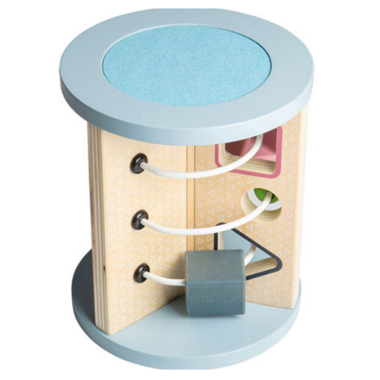Baby sensory toys and shape sorters are excellent for children's cognitive development, dexterity and hand-eye coordination. Rolling Sensory Sorter is designed with a natural wood look alongside soft shades of blues and pinks.