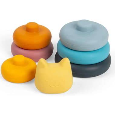 Purr-fect for pet fans, Silicone Stacking Cat features six stacking rings and one cute cat face which slots on top of the tower. The smooth silicone texture is gentle on little hands and great for sensory development.