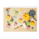 - 1 wooden mallet, 4 animal screw bolts, 4 nail pegs, 4 numbered triangles & 2 spinning cogs