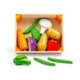 Fresh from the market, this wooden play food Vegetable Crate includes a selection of vegetables such as a carrot, broccoli, pepper, onion and more! A great addition to any budding chef's wooden play kitchen.