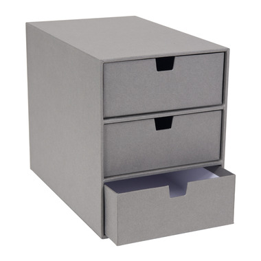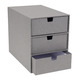 Ingrid is a handy desktop organizer with 3 drawers to keep your supplies close at hand. Unclutter your desk from small accessories or keep your most precious items organized and in one place. Create a tidy working space with Ingrid. Completely removable drawers slide out smoothly, with practical cut-out handle. Constructed in textured paper.