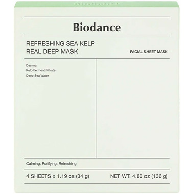 Biodance Refreshing Sea Kelp Real Deep Mask is a hydrogel sheet mask crafted to deliver deep hydration and a soothing experience, especially for oily and combination skin types. Powered by marine-based ingredients, it helps balance the skin while leaving it feeling fresh and revitalized.