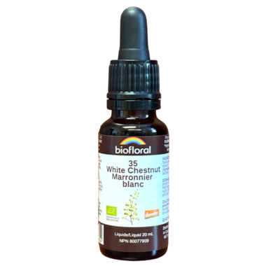Organic Flower Essence Remedy White Chestnut: Worry "For those who cannot prevent thoughts, ideas, arguments which they do not desire from entering their minds. Usually at such times when the interest of the moment is not strong enough to keep the mind full. Thoughts which worry and will remain, or if for a time thrown out, will return. They seem to circle round and round and cause mental torture. The presence of such unpleasant thoughts drives out peace and interferes with being able to think only of the work or pleasure of the day." Twelve Healers and Other Remedies (Saffron Walden, Essex, England: C. W. Daniel Company, 1936)>