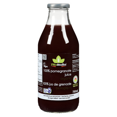 Bioitalia's Pomegranate Juice intensely smells like freshly opened ripe pomegranates. Organic pomegranate juice is obtained from 100% certified organic pomegranates. It's not juice from concentrate, but from fresh fruit, with no added additives or refined sugars.