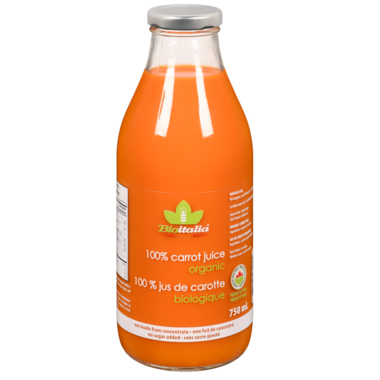 Bioitalia's organic 100% carrot juice is not made from concentrate and has no sugar added.