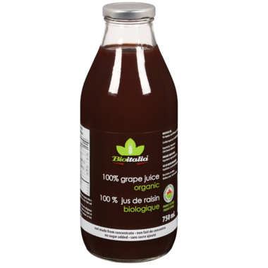 Bioitalia's organic 100% grape juice is not made from concentrate and has no sugar added.