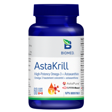 AstaKrill is a high-potency omega-3 and antioxidant formula combining SuperbaBoost® krill oil with AstaPure® astaxanthin to deliver exceptional bioavailability and cellular support.