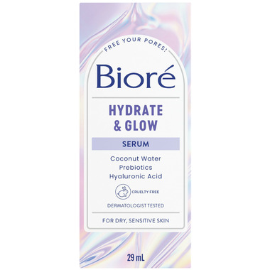 Treat skin to a boost of supreme hydration and moisture with Biore Hydrate & Glow Serum. Great for dry, sensitive skin, this serum is infused with a hydrating blend of Coconut Water, Avocado Oil and Hyaluronic Acid. Effectively soothe dry, flaky skin without clogging pores to reveal plump, dewy, hydrated skin.