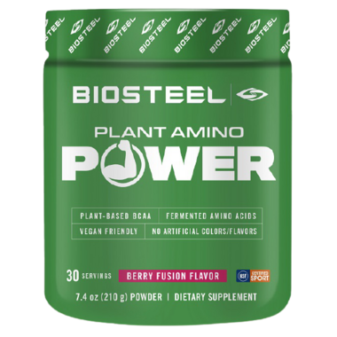 BioSteel’s Plant Amino Power provides a scientifically suggested 3:1:1 ratio of fermented branched chain amino acids; leucine, isoleucine, and valine. Micronized glutamine and completely vegan, Plant-Amino Power is a workout supplement and assists in the building of lean muscle mass when combined with regular resistance training and a healthy balanced diet.