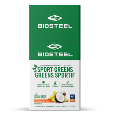 BioSteel Sports Greens is designed to help you easily score an array of health-boosting ingredients. With combinations of plants and vegetables that have been dried and blended into a powder, Sports Greens is a convenient and effective way to get in the greens you need to keep your body and immune system healthy. In this formula, antioxidants such as Vitamin C, prevent free radical damage and support the immune system. When its difficult to squeeze in enough servings of greens into your diet through whole foods, just add a packet of Sports Greens into your water.