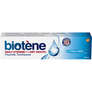 Biotène® Dry Mouth Fluoride Toothpaste Fresh Mint Original is formulated to minimize the irritations that come with Dry Mouth. If you suspect you're one of the millions of people with Dry Mouth, don't change your routine, just change your toothpaste. Try brushing with biotène Dry Mouth Fluoride Toothpaste Fresh Mint Original twice a day. It's a simple way to help maintain the health of your teeth without additional irritation.