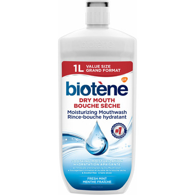 Specially formulated for immediate and long-lasting dry mouth relief, Biotne mouthwash contains a mouth moisturizing system that refreshes and moistens to help maintain a healthy oral environment.