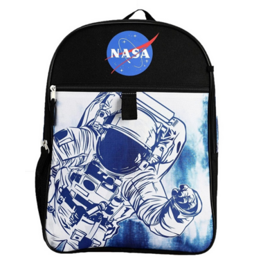 - Design: This blue, white and black coloured backpack features the NASA logo on the front along with an astronaut floating in the sky.