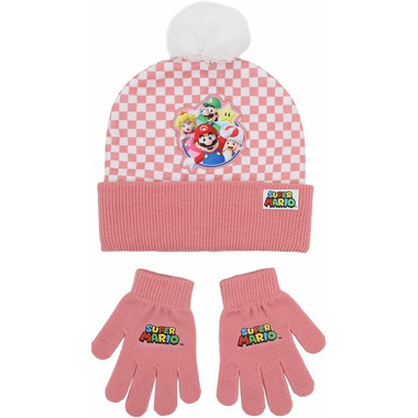 Bioworld Youth Beanie & Glove Set Super Mario Pink