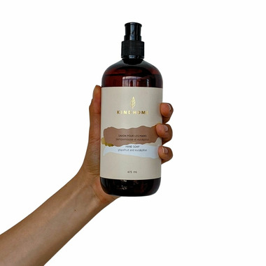 BKIND's hand soap is made from 100% natural ingredients and contains grapefruit and eucalyptus essential oils for a fresh, fruity scent.