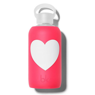 bkr Bisous Heart Glass Water Bottle Sheer Pinkish Cherry Red with Heart