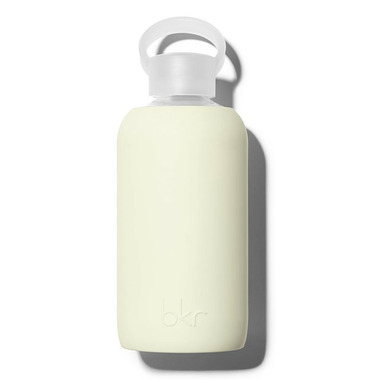 The bkr Butter Glass Water Bottle was inspired by an undone linen bed, bottomless coffee, windows open and newspapers scattered, that Paris Sunday afternoon feeling, looking through the window at everything calm and ready, eating waffles made of cake batter, wearing only a pale pink manicure and a huge, chunky blue knit sweater.