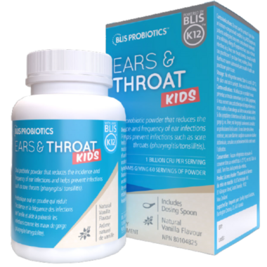 Scientifically developed probiotic protection for the mouth and throat. Ears&Throat for Kids with BLIS K12® is an advanced oral probiotic that helps defend against bad bacteria in the mouth and throat. Each serving of powder contains a high dose of BLIS K12® (not less than 1 billion colony forming units (CFU) at the end of shelf-life) so you know you are giving your child the very best probiotic throat protection possible.