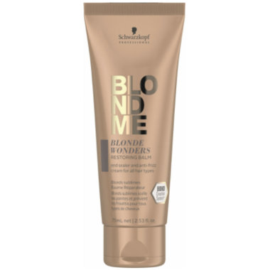 BLONDME Blonde Wonders Restoring Balm helps to prevent hair from breakage. The formula reduces frizz and seals split ends whilst leaving hair soft and shiny and protects from heat up to 210°C when applied to dry hair.
