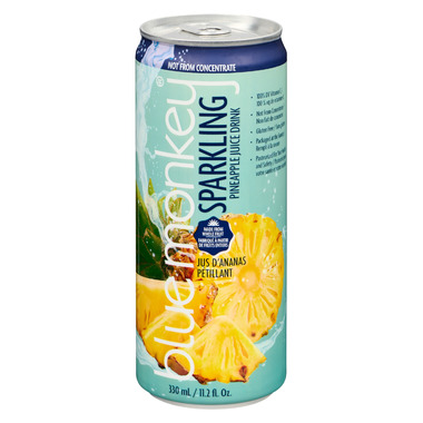 Blue Monkey Sparkling Pineapple Juice Drink is made from whole fruit.
