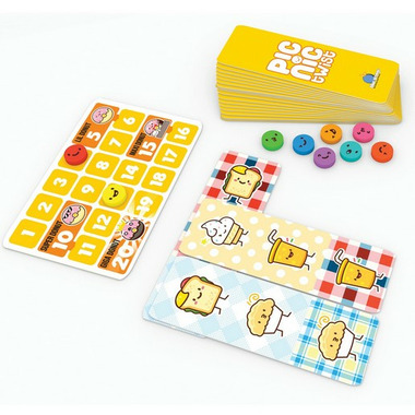 Picnic Twist is a puzzling game where players try to organize their picnic meals and tablecloths in the best possible way. Through a drafting system, they select their cards to place in their playing area so that the cards combine the largest number of similar elements.