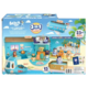 Includes: Bluey + 10 play pieses. 2pcs luggage, 2 chairs, 1 pilot hat, 1 cart/table 1 check-in-desk, 1 computer, 1 hot tub,1 pasport. Includes Lights and Sounds! 25 Vacation Sounds + Phrases!