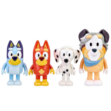 Bluey is a loveable, six-year-old Blue Heeler dog, who loves to turn everyday family life into endless, playful adventures. Bring the fun and imaginative play of Bluey and her friends home with these cute Bluey Figure Packs! This 4 Figure Pack includes Bluey and three of her friends - Snickers, Honey and Coco! All Figures in this Pack have moving arms and torso so that they can get up to all sorts of adventures! Children will love to recreate some of the most memorable moments from the show with these adorable toys! WARNING- Choking Hazard - Toy contains small parts. Not for children under 3 years