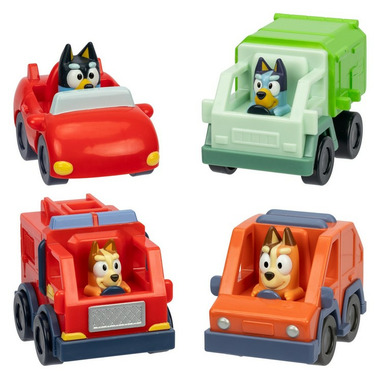 Come for a ride in the Bluey Mini Racers! Now your little Bluey fan can race Bluey and her family around in a fun, new mini form. Who will they choose? Bluey in the Garbage Truck, Bingo in the Fire Truck, Bandit in the Convertible or Chilli in the Heeler 4WD? Each Mini Racer has free-rolling wheels and is designed for preschooler hands to hold and push. Collect them all!