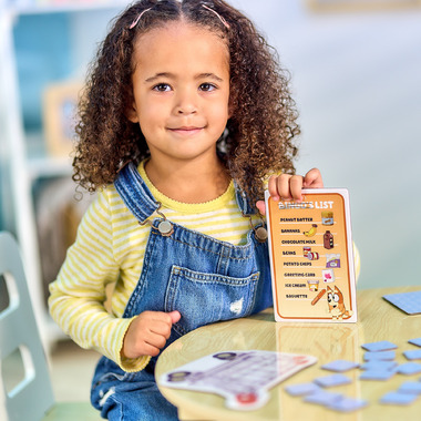 Whether it’s for family fun, preschool play, or a playful gift, the Bluey Shopping List Game is sure to delight every time you open the box! Ideal for 2-4 players.