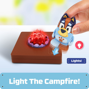The Tile Town Bluey Heeler Camper Tile Set includes a “Campfire” Action Tile. When activated by the magnetic Bluey or Bandit figure, the campfire lights up and upgrades your child’s builds into thrilling scenes full of excitement!