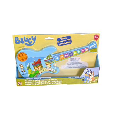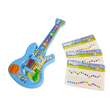 Strum the Bluey theme song with Electronic Guitar! This fun electronic guitar plays the Bluey theme song and several other tunes. Your child can choose different instruments and whammy bar sounds.