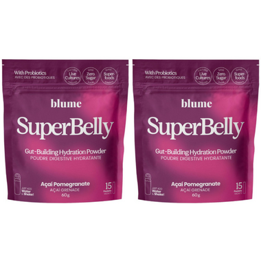 Blume is on a mission to create a kinder wellness world. At Blume that looks like simple, daily habits that fill your cup. Hydration and gut health are interconnected & foundational to feeling your best. SuperBelly combines a love for superfoods with prebiotics (from inulin), fermented apple cider vinegar, and probiotics that can contribute to a healthy gut. Get a good gut feeling from your hydration and fill your cup with Blume.