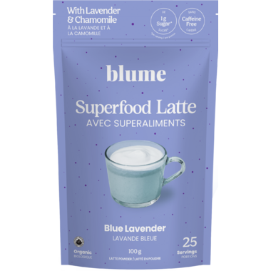 Blume Superfood Blue Lavender Blend. Lavender, coconut milk and blue spirulina make this blend balanced, calming and smooth. Take a sip turn your brain off and just do nothing. Add to milk, smoothies, oatmeal or really anything.