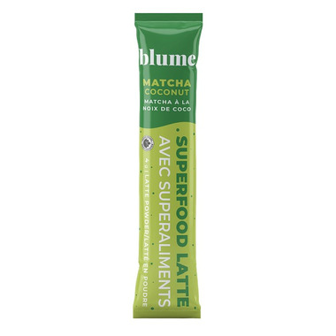 Blume Superfood Matcha Coconut Latte Mix Single Serve Packets. Meet your energizing pick-me-up, without the jitters or crash. Organically grown and sourced from the Shizuoka region of Japan, this blend is a combination of stone-ground, hand-picked matcha, and antioxidant-rich moringa, with a creamy coconut finish. The familiar taste of green tea is balanced with a subtly sweet nutty flavor and a creamy finish.