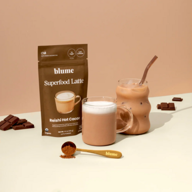 Blume Superfood Reishi Hot Cacao Blend. Hot chocolate with benefits. It's the grown up cup of chocolatey goodness you've been waiting for. Go, on, dive right in.