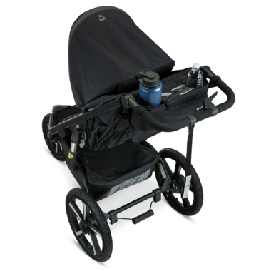 Stay organized on the go with this Deluxe Handlebar Console. Two cup holders keep drinks within reach, including an extra-wide holder for larger bottles. The storage pocket secures all your essentials, while the cell phone pocket lets you view & use your touchscreen on the go. Includes a tire pump for easy maintenance of air-filled tires. Console is made with a durable, water-resistant fabric, and hook & loop straps for easy attachment. Compatible with all BOB Gear single jogging strollers.