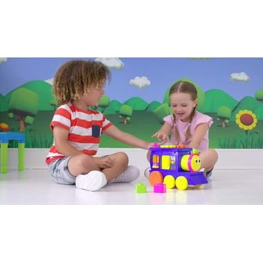 Children love when Bob the Train's Sort-N-Sounds Train comes to town! Songs, phrases, and shape sorting activities engage and entertain for hours of fun learning! Little ones will light up and smile when hearing familiar words and tunes from the hit videos seen on YouTube! Roll the train to hear "The Shapes Song," and spin Bob’s neck to listen to phrases from the show! Also features removable shapes, gears that turn, sliding door with peekaboo mirror, rattle coins, and a moving star on Bob’s back!