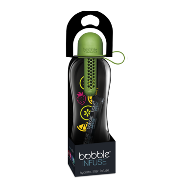 What's your flavour? Kick up the flavour in your water with the bobble Infuse water bottle. Featuring a modular cap system, this bottle lets you hydrate, filter, or infuse. When the carbon filter is removed, the filter cage acts as a fruit infuser, just add your favorite fruit or vegetables to the bottle, replace the cap, and enjoy.