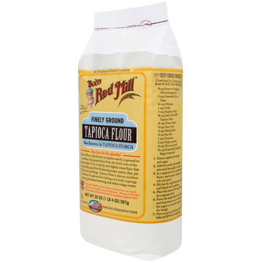 Bob's Red Mill Gluten Free Tapioca flour, also known as tapioca starch, is a starchy white flour that has a slight sweet flavor to it. Tapioca flour is an alternative to traditional wheat flours and has a variety of uses in baking. The flour is made from the starch extracted from the South American cassava plant. When the roots have fully developed, they are harvested and processed to remove toxins. The starch is then extracted from the root by a repeated process of washing and pulping the mixture, then separating off the liquid.