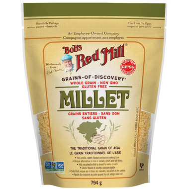 Enjoy Bob's Red Mill Gluten Free Whole Grain Millet as a unique alternative to rice in salads and stir-fries. Cook millet for a sweet breakfast porridge or add uncooked millet to breads for a crunchy texture. Serve millet with a drizzle of olive oil, and a dash of salt and pepper in place of mashed potatoes for a delightful side that will enhance any meal.