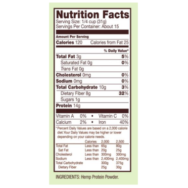 Hemp Protein Powder dissolves easily and has a mild taste, making it a wonderful addition to your smoothie or shake. It can also be added to baked goods, pancakes and hot cereals for a boost of protein, fiber and iron.