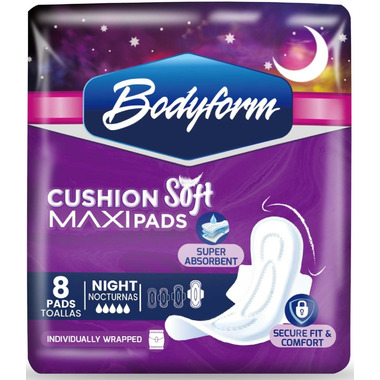 - Tailored to You: Choose the right absorbency for your flow. BodyForm Night Maxi Pads have options to suit your needs