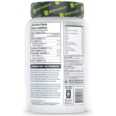 Medicinal Ingredients: Whey protein isolate (25 g of complete protein) 28.11 g (cows milk).