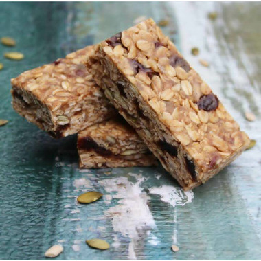 Ingredients: Gluten Free Oats, Tahini (Ground Sesame Seeds), Pure Maple Syrup, Virgin Coconut Oil*, Raisins* (Organic Thompson Raisins, Organic Sunflower Oil), Dates, Sunflower Seeds*, Pumpkin Seeds*, Spices, Sea Salt (*Organic)